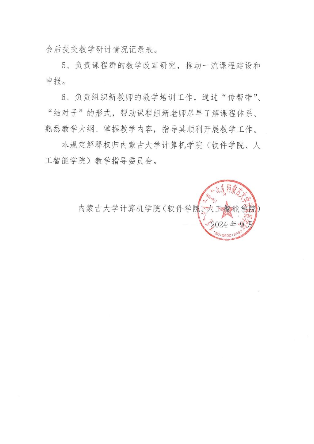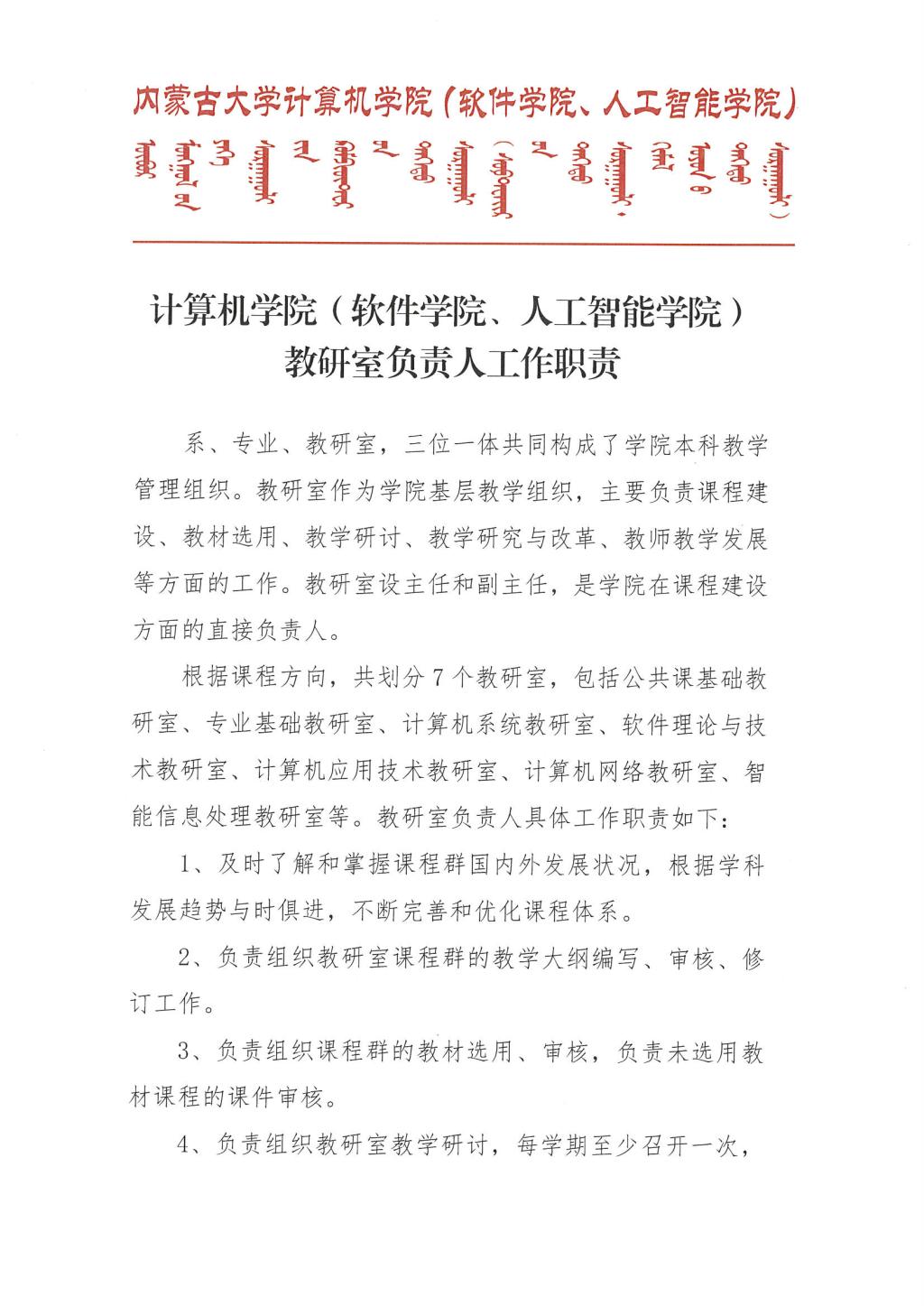 太阳成集团tyc522cc(软件学院)、人工智能学院教研室负责人工作职责