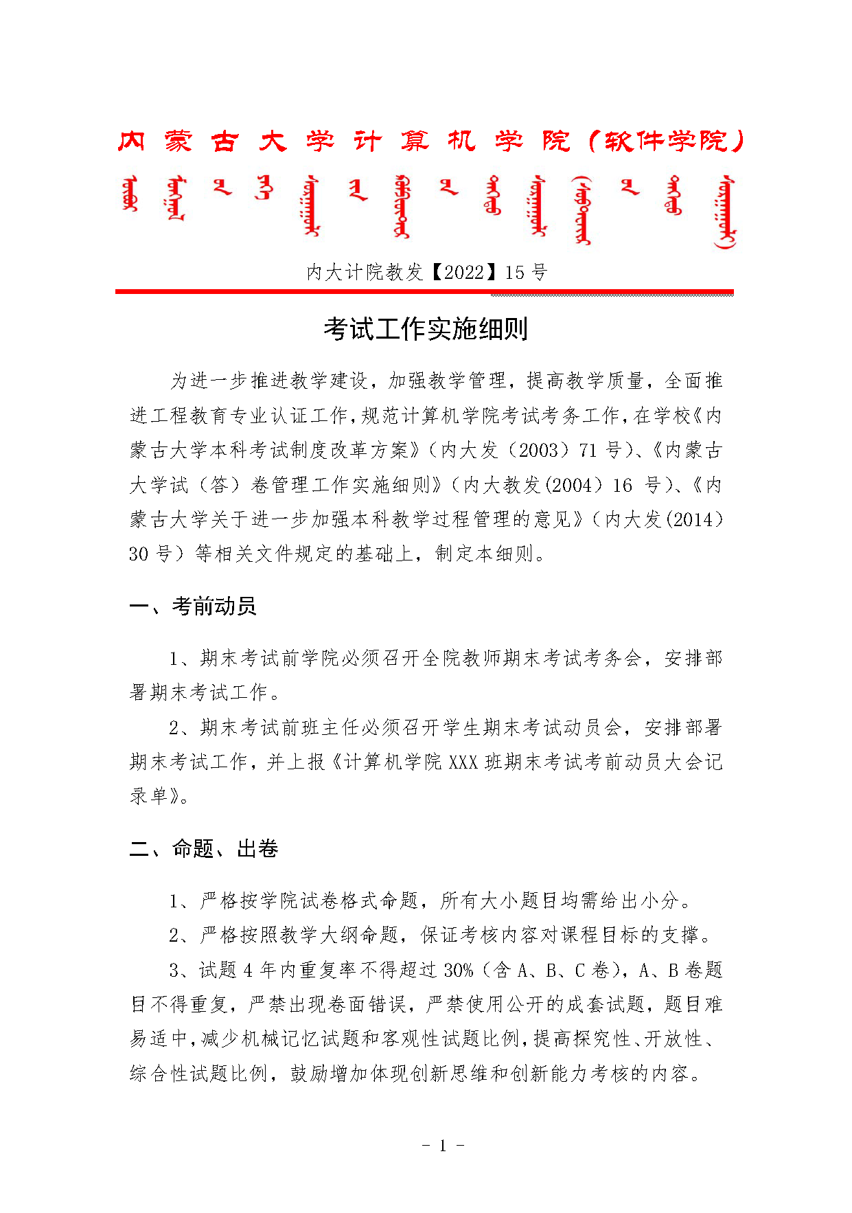 太阳成集团tyc522cc(软件学院)考试工作实施细则