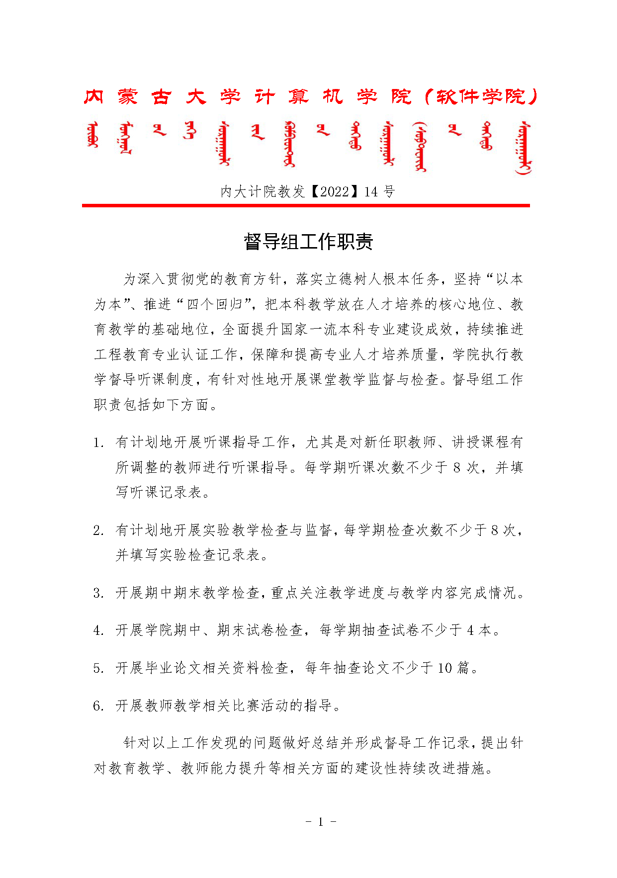 太阳成集团tyc522cc(软件学院)督导组工作职责
