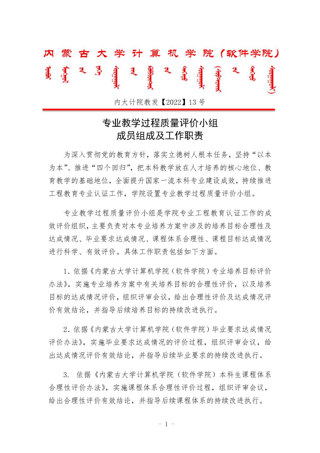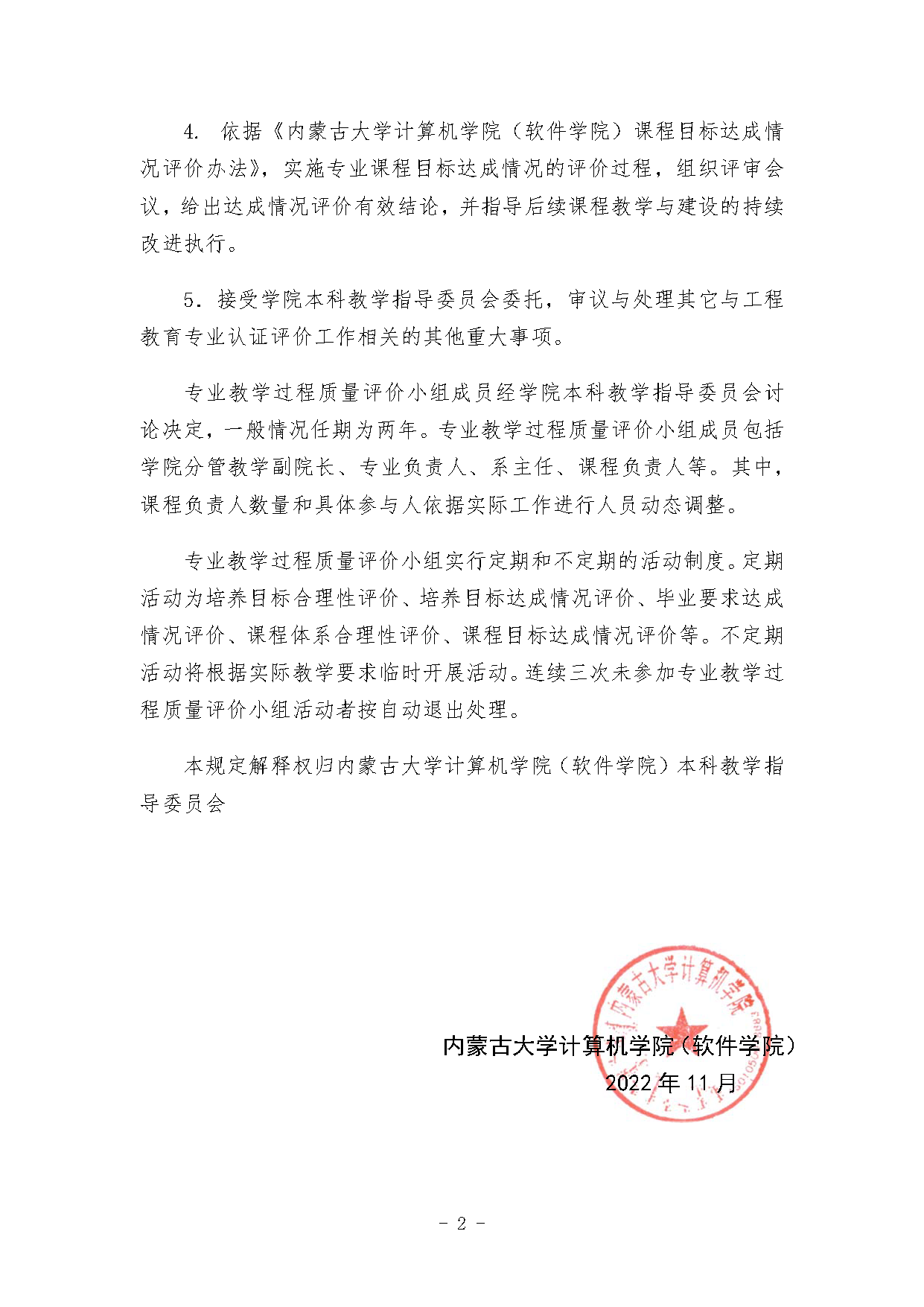 太阳成集团tyc522cc(软件学院)专业教学过程质量评价小组工作职责