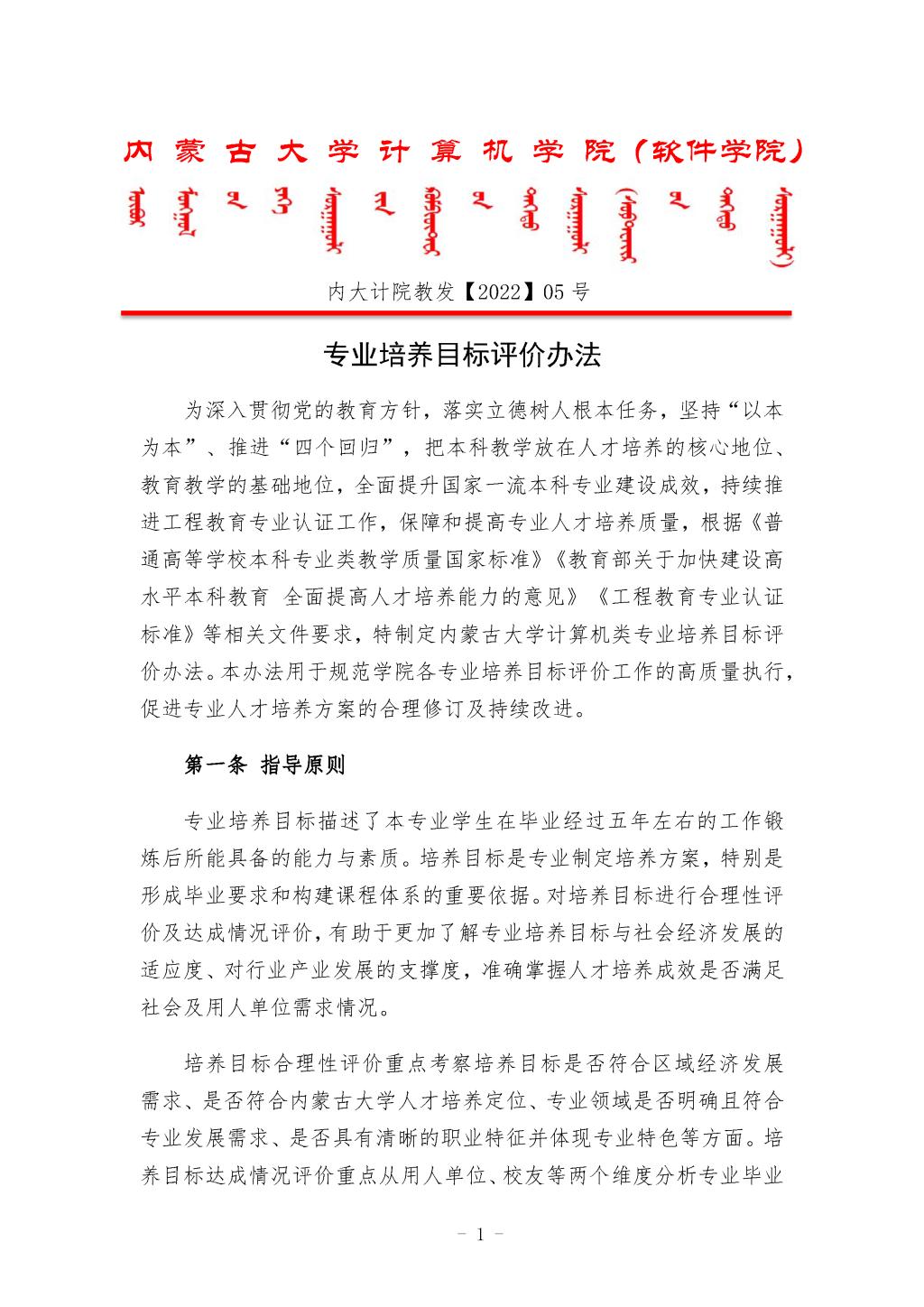 太阳成集团tyc522cc(软件学院)专业培养目标评价办法
