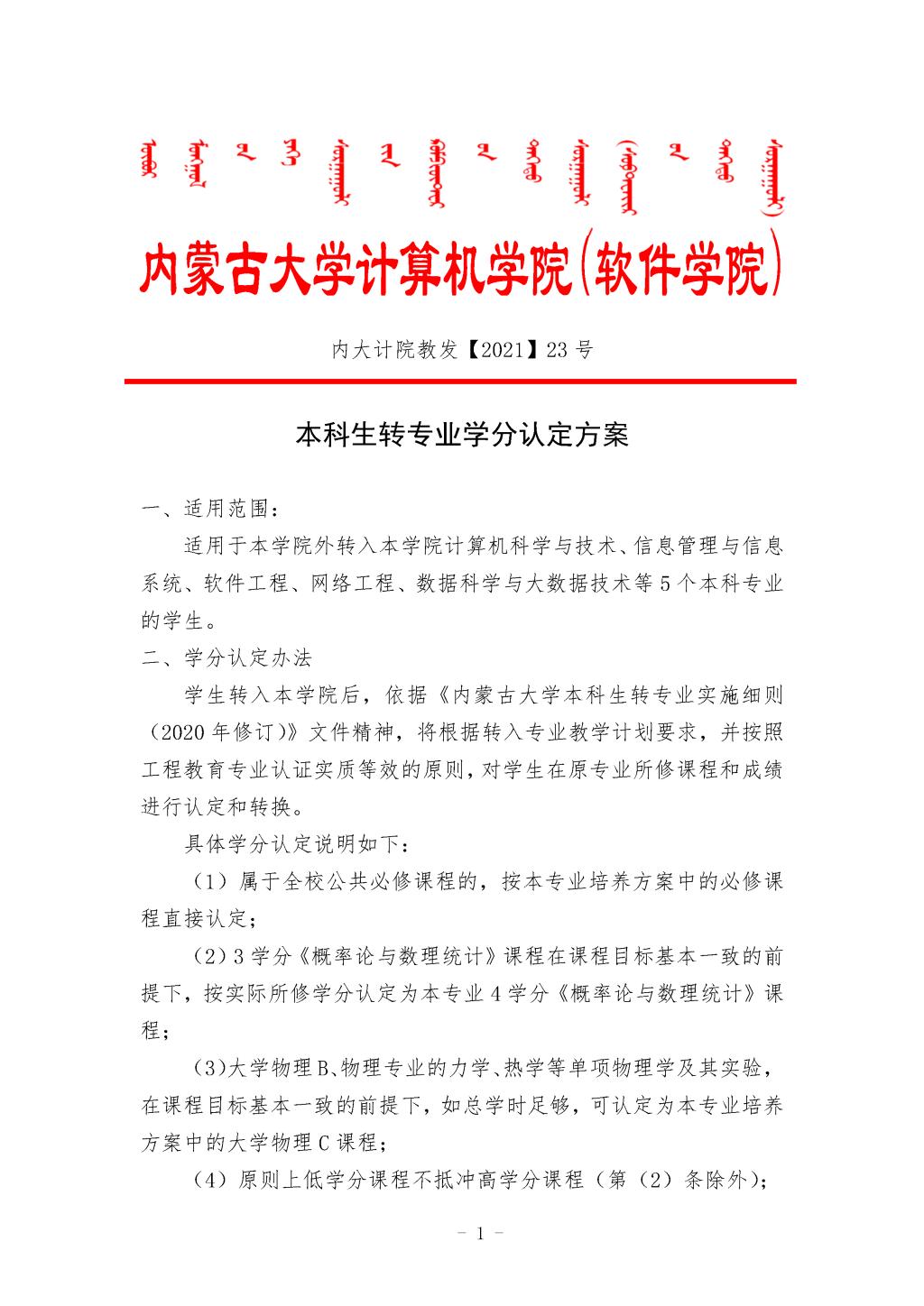 太阳成集团tyc522cc(软件学院)本科生转专业学分认定方案