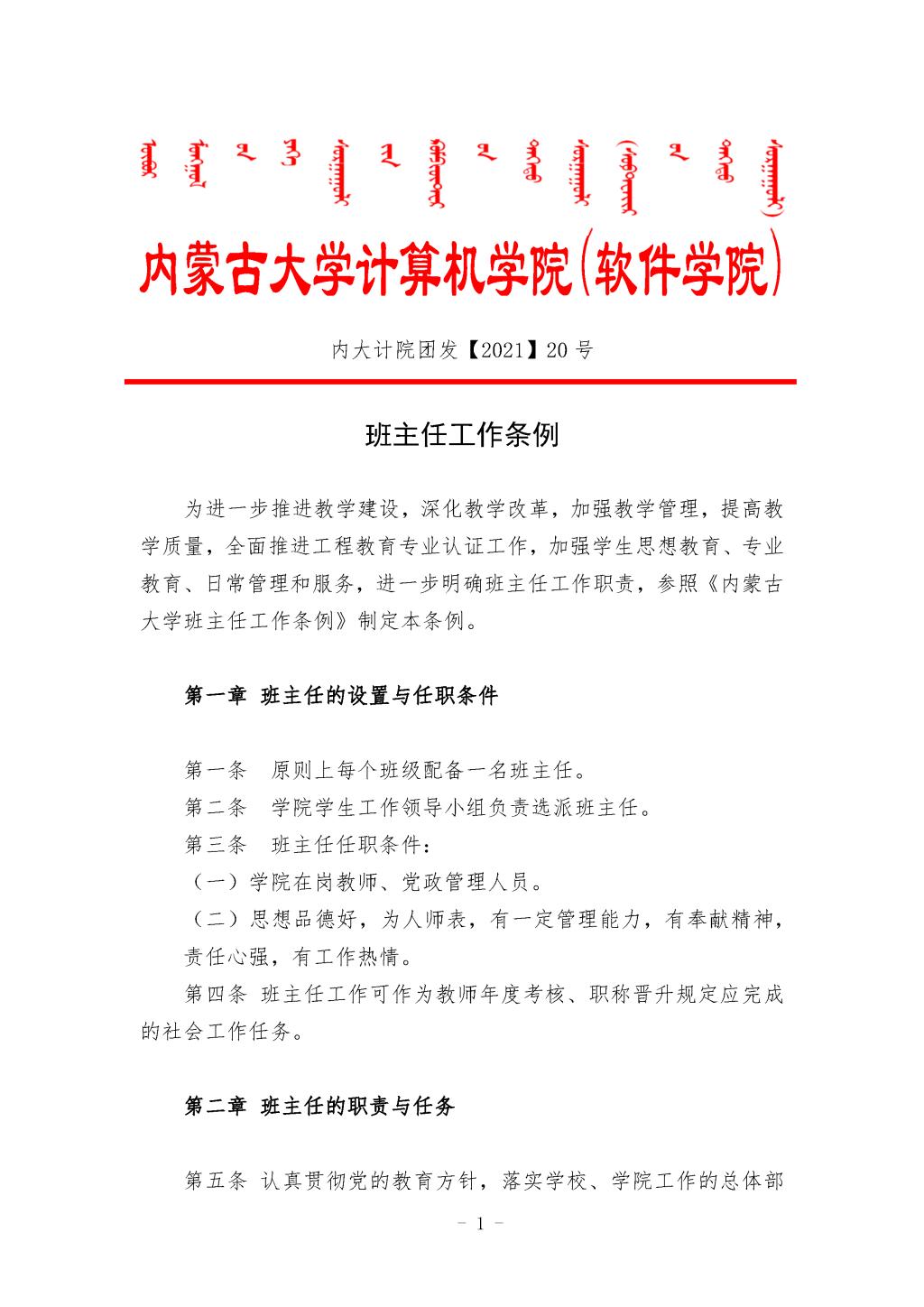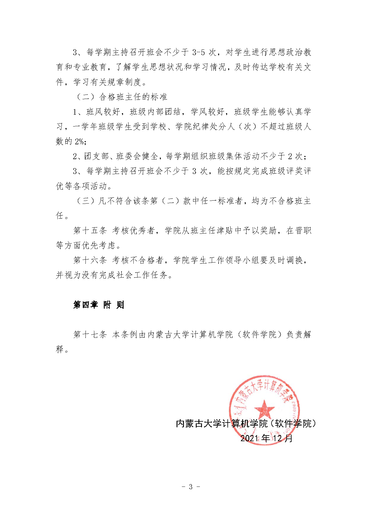 太阳成集团tyc522cc(软件学院)班主任工作条例