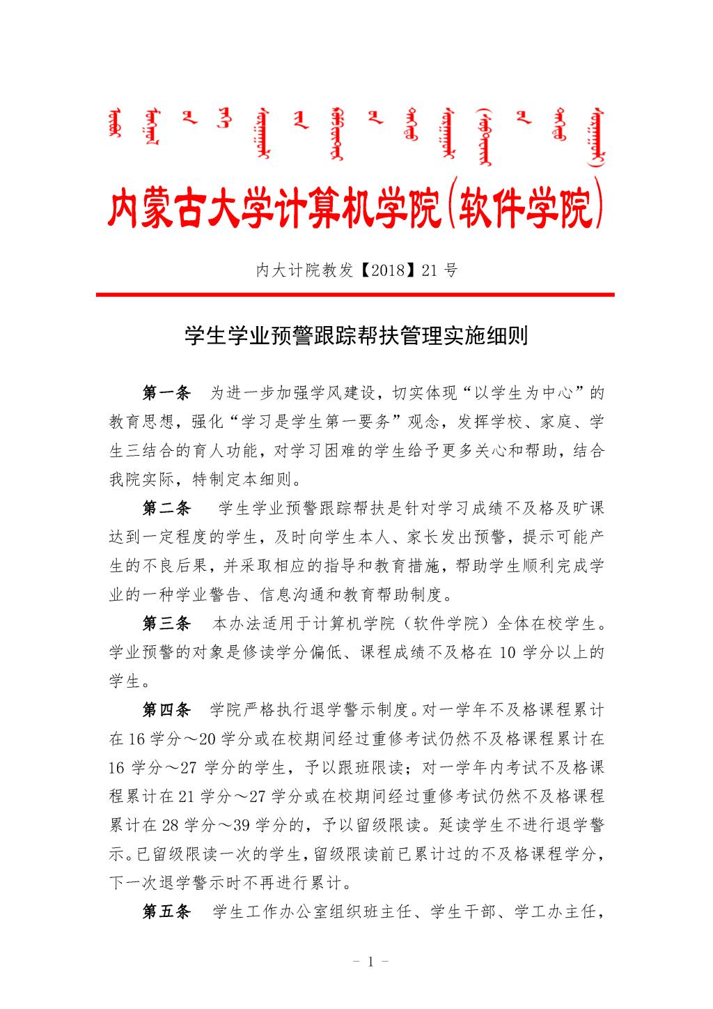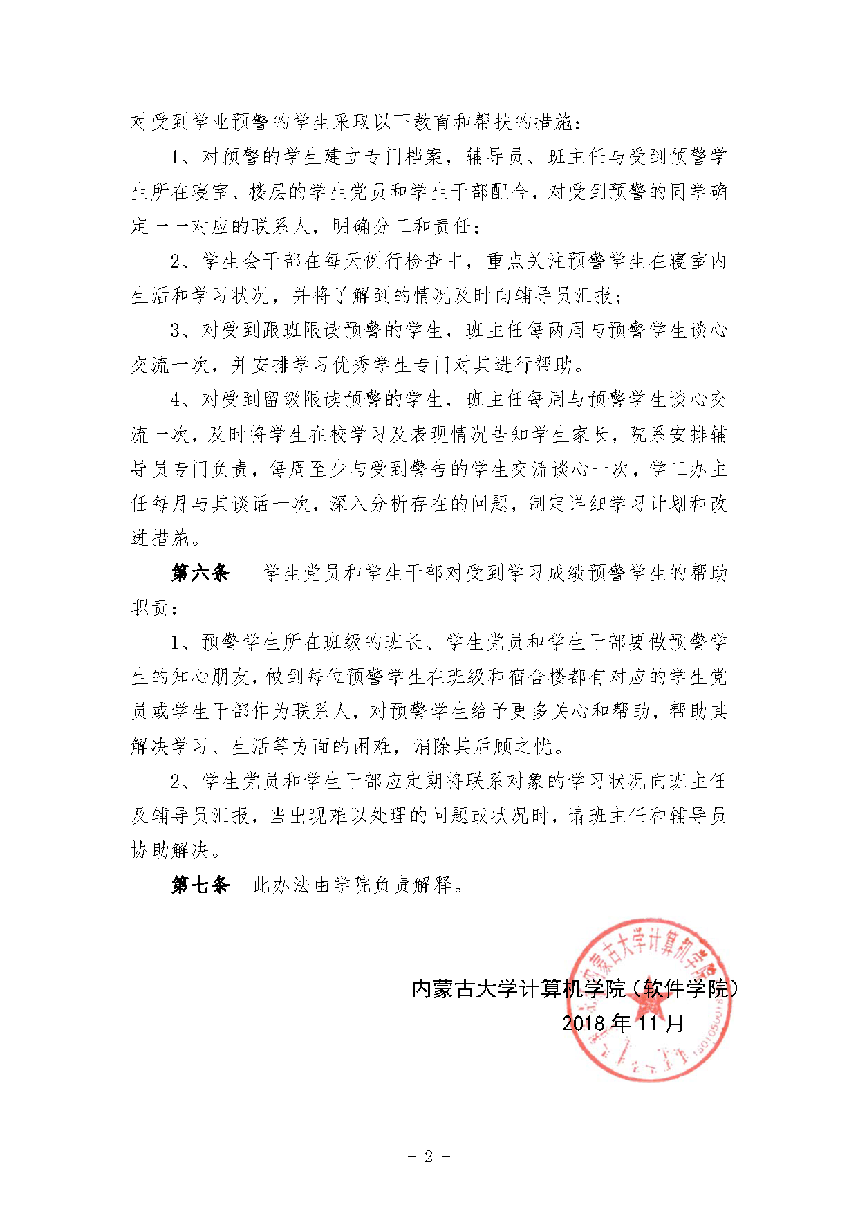 太阳成集团tyc522cc(软件学院)学生学业预警跟踪帮扶管理实施细则
