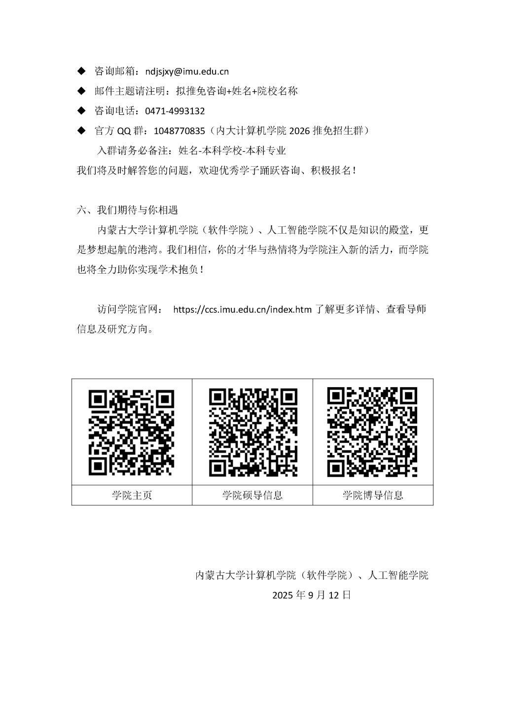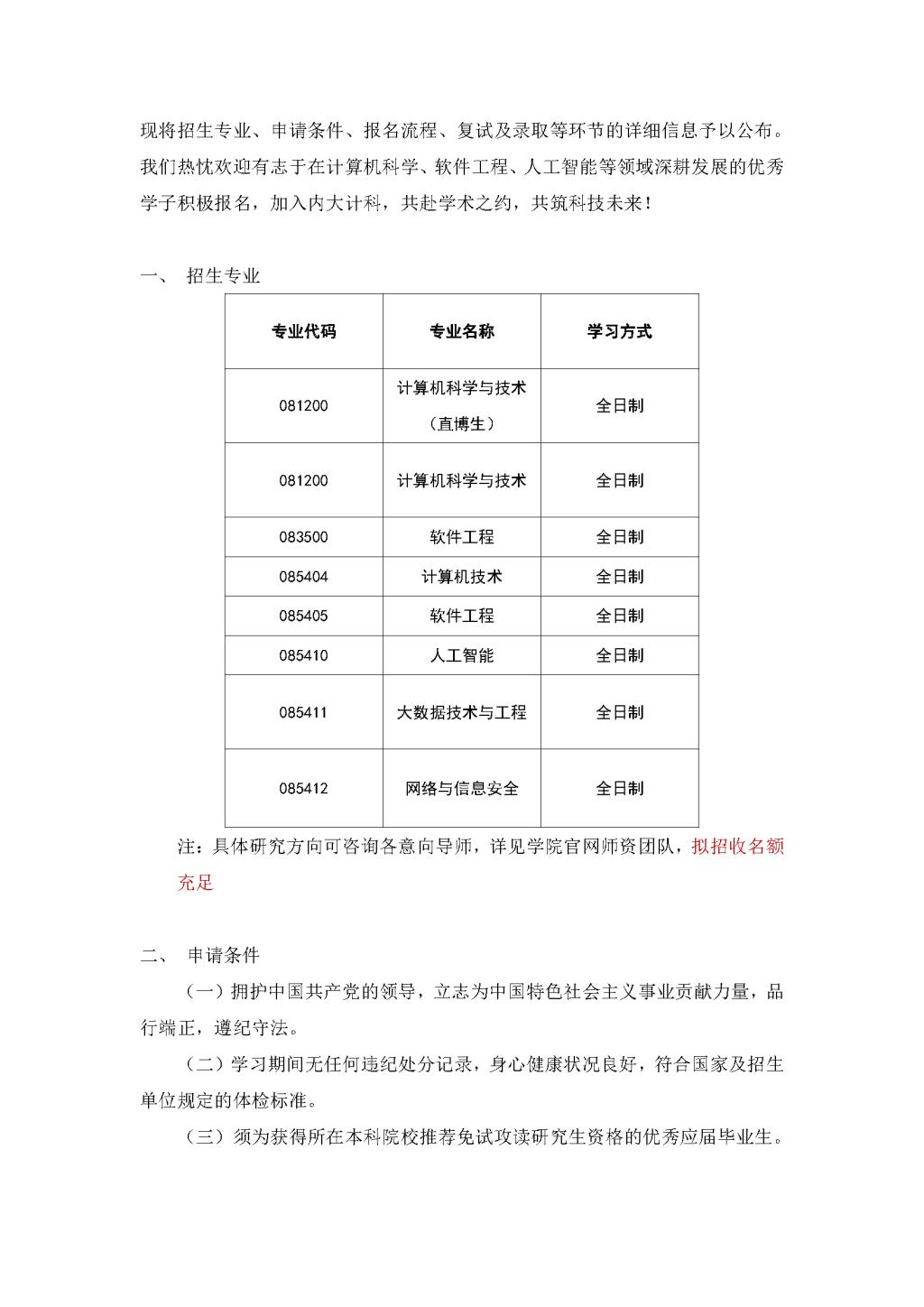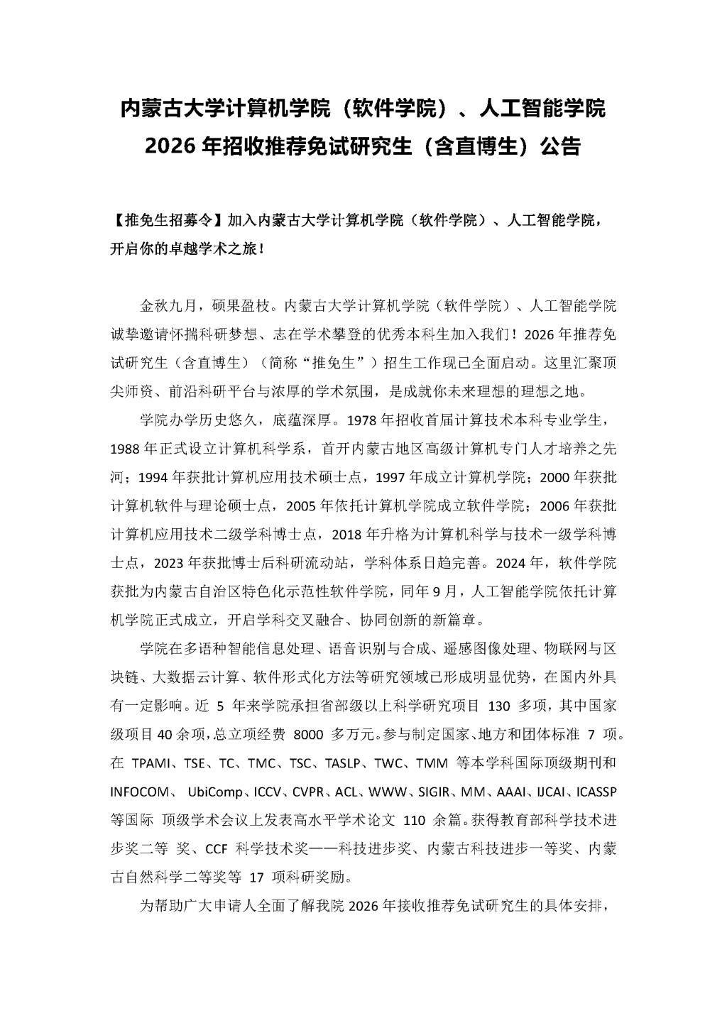 2026 年招收推荐免试研究生(含直博生)公告