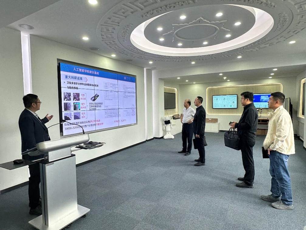 高光来主任、史振威院长向吴苏海局长一行的到来表示热烈欢迎介绍,并介绍了学院师资队伍、人才培养、科研建设情况,以及在人工智能领域取得的重大研究成果。