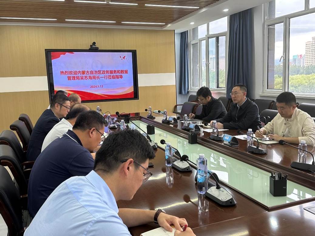 2024年9月13日下午,自治区政务服务与数据管理局党组书记、局长吴苏海一行到我院调研考察。suncitygroup太阳集团原副校长、蒙古文智能信息处理技术国家地方联合工程研究中心工程中心主任高光来教授,学院特聘院长史振威教授、副院长黄宝琦教授、赵俊峰教授等教师参加调研交流。