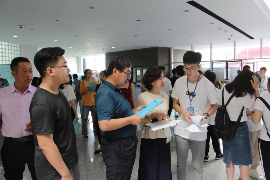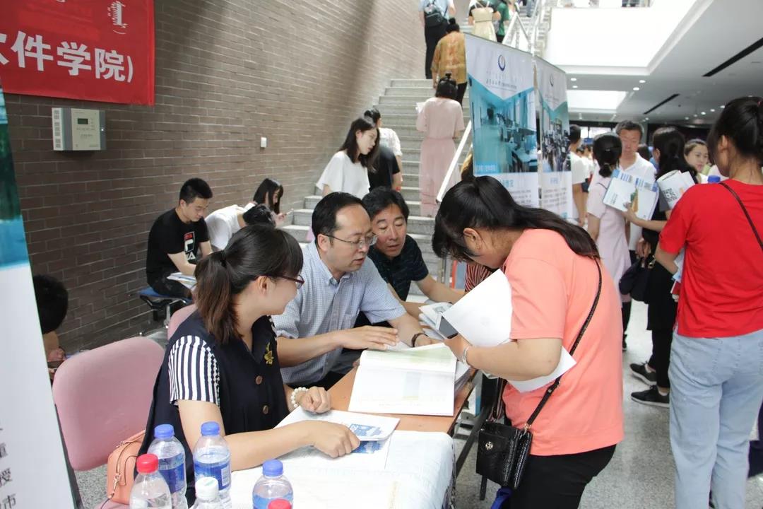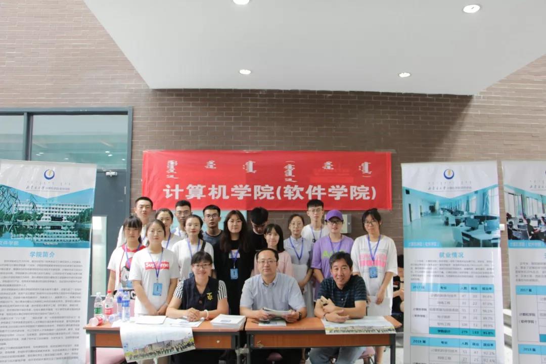 学院团总支书记兼学工办主任刘雪峰老师、信管电商系主任张献国老师、软件工程系主任孟和吉雅老师及部分学生会工作人员来到了活动现场为各位考生及家长提供志愿填报咨询服务。