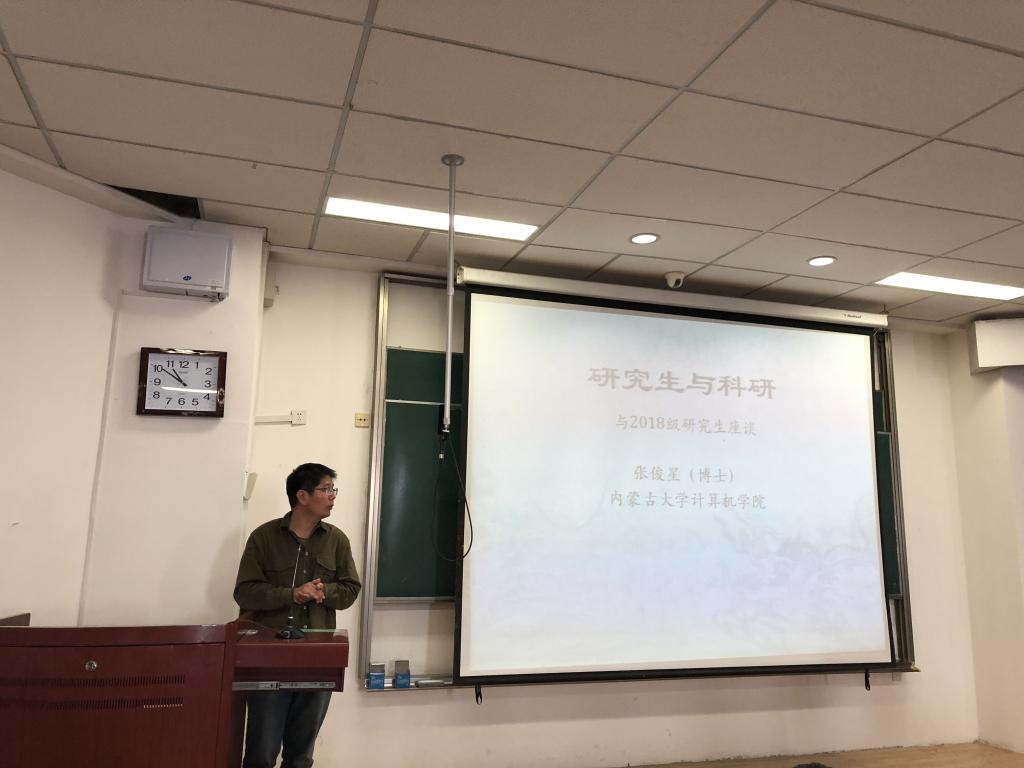 最后,博士生导师张俊星教授做了关于“研究生与科研”的主题报告。张教授首先对什么是研究生,什么是科研进行了阐述。他指出研究生应当珍惜三年宝贵时光,在科研方面投入更多的精力。他也强调研究生对于学习方法的掌握和知识的积累是一段重要的过程,同学们应该学会独立思考;其次,张俊星教授也提出在平时的科研中,应注重科学研究的过程,即抓好“重复”和“探索”两个关键词,做好未来阶段的发展规划,眼光放的更加长远。最后,张教授对在座同学提出了几点希望,希望大家能积极同导师进行沟通,在学术科研上有所斩获,能有良好的学术成就,发表高质量的学术论文。