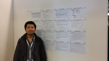 张学良博士在会上向大家介绍了研究小组的研究成果,作了题为《使用带时 序的深度层叠网络完成语音分离任务》(Deep Stacking Networks With Time Series for Speech Separation)的报告,报告提出:在基本的深度层叠网络模型中增加对时间因素的考虑,可以提高语音分离系统的性能,实验结果表明在相同数据集下,提出的方法在分离性能上比现有的方法都要好。该工作受到了语音分离领域的领军研究者——美国俄亥俄州立大学的汪德亮教授的高度肯定和其他参会者的好评。张学良博士和张晖同学与国内外专家和学者就机器学习和语音处理技术中的相关问题进行了深入的交流与探讨。通过参加本次国际学术会议,扩展了研究视野,同时也对声学、语音和信号处理技术领域的研究动态有了进一步的了解。