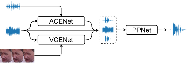 目标说话人抽取旨在从其他干扰说话人的语音中分离目标说话人的语音。通常,采用预录制的语音或面部视频作为辅助信息引导神经网络关注到目标说话人。现有的方法使用这些线索中的一种或通过注意力机制将两者融合,从而产生目标说话人的融合特征。虽然这两种线索都代表相同的说话人,但角度却并不相同。音频线索记录了说话人的音色特征,而唇部动作则代表同步特征。为了融合不同线索的优势并缓解线索之间的冲突,我们提出了一种统一的目标说话人抽取网络,称为Uni-Net,该网络采用分治的策略,将音频和视频线索融合到不同的网络中,以利用每种线索的独特信息。通过不同线索抽取得到的语音作为先验信息,进一步由后处理网络进行细化。我们在公共的VoxCeleb2数据集上进行实验,结果表明,Uni-Net相比于基线方法达到了最优的性能。