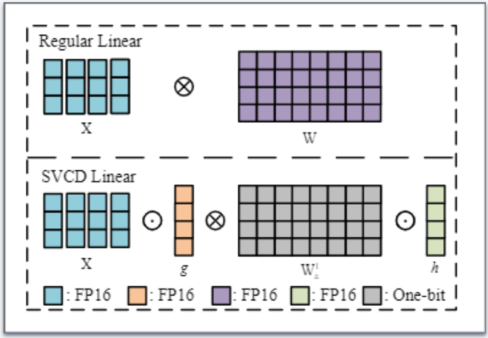 语音到文本的翻译对于将语音输入转换为不同语言的文本输出至关重要。虽然结合语音和机器翻译预训练模型可以提高翻译质量,但也会增加参数数量,从而导致模型训练和部署的硬件成本大幅增加。为了应对这一挑战,我们提出了一种基于符号值约束分解(SVCD)的线性层1位量化模型。SVCD将线性层的权重矩阵近似为符号矩阵和两个可训练向量,以较小的空间成本保留了更高的信息容量。此外,我们利用知识蒸馏将原始微调模型的能力转移到量化模型。实验结果表明,解码器的注意力模块对于量化语音翻译模型的性能至关重要。