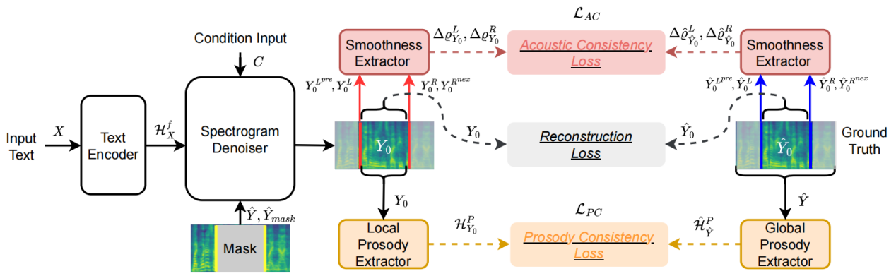 受到传统单元选择语音合成架构的启发,本文提出了一种流畅语音编辑模型FluentEditor,在TSE训练中引入流畅性感知的训练准则,分别从声学和韵律两个方面提升编辑边界处的平滑度。具体来说,声学一致性约束(The Acoustic Consistency Loss)旨在平滑编辑区域与其相邻声学片段之间的流畅过渡,使其与真实音频一致;而韵律一致性约束(The Prosody Consistency Loss)则旨在确保编辑区域内的韵律属性与原始语句的整体风格保持一致。在VCTK上的主观和客观实验结果表明,FluentEditor模型在自然性和流畅性方面均优于所有先进的基线方法。音频样本和代码可在https://github.com/Ai-S2-Lab/FluentEditor获取。