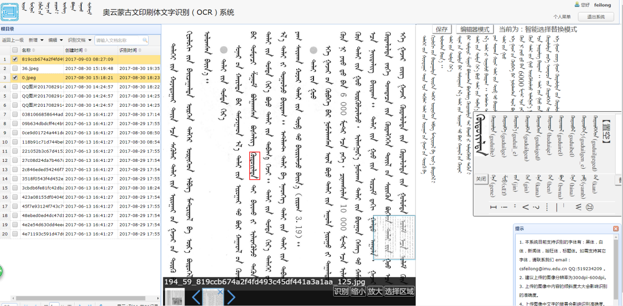 在内蒙古自治区成立70周年,suncitygroup太阳集团成立60周年之际,太阳成集团tyc522cc蒙古文信息处理重点实验室成功研发了新型蒙古文印刷体识别(OCR)系统(奥云蒙古文OCR系统)为自治区和学校献礼。该系统以大数据、国际上最先进的深度学习技术和云服务为设计框架,是国内首个支持多种蒙古文字体、且识别正确率和整体功能达到实用水平的系统。
