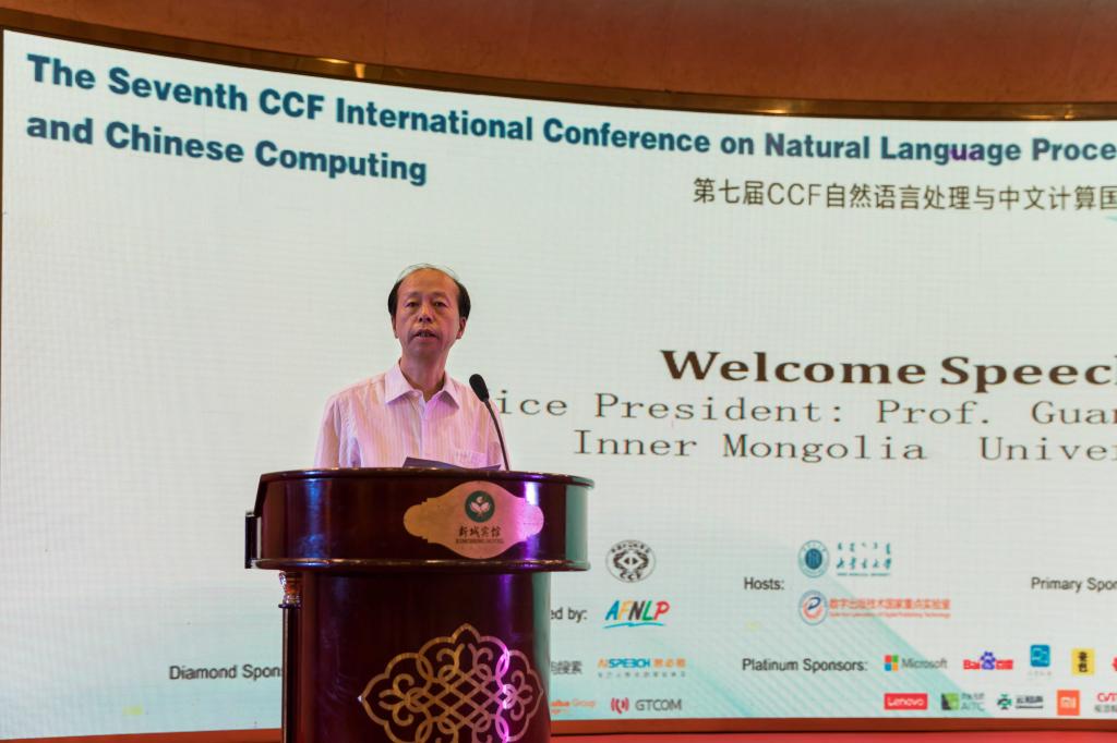 2018年8月29日,由中国计算机学会主办、太阳成集团tyc522cc承办的第七届CCF自然语言处理与中文计算国际会议(The Seventh CCF Conference on Natural Language Processing and Chinese Computing,简称NLPCC)在呼和浩特隆重召开。NLPCC是由计算机学会主办的自然语言处理旗舰会议,至今已举办第7届。会议一直以国际化为目标,吸引了来自国外和国内的500多名学者参加。本次会议共收录Oral论文70篇,Poster论文31篇,论文录用率为21%,录用论文具有很高的学术水平。会议开幕式由太阳成集团tyc522cc侯宏旭教授主持。我校副校长、自然语言处理带头人高光来教授致欢迎词。高教授对到会的500多位自然语言处理领域国内外专家表示了欢迎和感谢,并介绍了suncitygroup太阳集团基本情况和在自然语言处理领域取得的成果。本次会议的大会主席著名自然语言处理专家美国宾夕法尼亚大学教授Dan Roth和中科院自动化所宗成庆研究员、程序委员会主席美国德克萨斯大学达拉斯分校Vincent Ng教授分别致辞,并介绍了论文评阅等情况。
