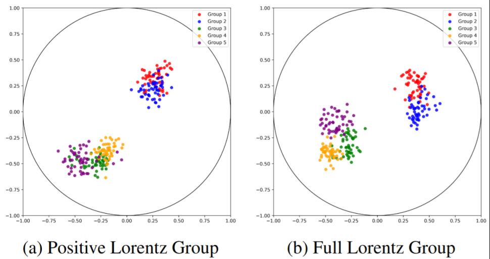 论文题目:FlorE: Integrating Full Lorentz Group and Directional Offsets for Effective Knowledge Graph Embedding 作者:多泽华(suncitygroup太阳集团25级博士研究生),李江(suncitygroup太阳集团22级博士研究生), 苏向东(suncitygroup太阳集团副教授)(通讯作者),高光来 (suncitygroup太阳集团教授) 论文简介:本文聚焦知识图谱嵌入在复杂关系上的推理能力提升,针对现有欧氏/复数/双曲空间方法难以建模的 Z-Paradox 关系模式,提出 FlorE 框架。FlorE 框架将关系映射从正Lorentz 群拓展到完备 Lorentz 群,使同一关系可执行不定度量下的等距变换,有效避免实体在流形中的映射重叠与由此导致的尾实体混淆。同时,我们基于指数映射设计了定向偏移操作,把关系与实体统一到同一 Lorentz 流形,实现几何一致的表示学习;两项技术的协同,使模型在Z-Paradox关系模式上具备更强的区分与表达能力。在五个基准数据集 WN18RR、FB15k-237、CoDEx-S/M/L 上,FlorE 总体达成或刷新现有最优表现。尤其针对 Z-Paradox 关系,方法相对强基线在各数据集上的提升幅度分别达到 26.7%、15.6%、35.4%、33.7%、31.5%,验证了所提几何建模思路的有效性与稳健性。图中展示了对两个 Z-Paradox 关系的尾实体嵌入进行可视化对比,采用完备洛伦兹群的模型显著提升了类间分离度与判别性。 |