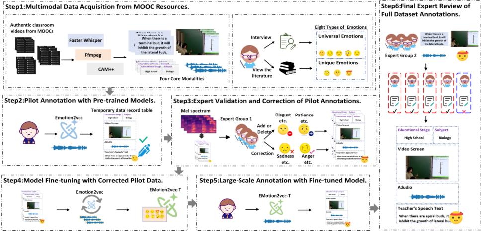 论文题目:Advancing Multimodal Teacher Sentiment Analysis: The Large-Scale T-MED Dataset & The Effective AAM-TSA Model 作者:段智议(suncitygroup太阳集团研究员),王祥任(suncitygroup太阳集团2024级硕士研究生),袁宏宇(suncitygroup太阳集团2025级博士研究生),邢千里(吉林大学副教授) 论文简介:教师的情绪状态在教育场景中至关重要,深刻影响教学效果、学生参与度和学习成绩。然而,由于教师情绪的演绎性,现有研究往往无法准确捕捉教师情绪,忽视了教学信息对情绪表达的关键影响。本研究通过相应地构建数据集和模型来系统地研究教师情绪分析。本研究构建了第一个大规模教师多模态情感分析数据集T-MED。为了确保标记的准确性和效率,本研究采用了人机协作标记流程。T-MED 数据集包含来自 250 个真实教室的 14,938 个教师情感数据实例,涵盖从 K-12 到高等教育的 11 个学科,集成了多模态文本、音频、视频和教学信息。此外,本研究提出了一种新颖的基于非对称注意力的多模态教师情感分析模型AAM-TSA。AAM-TSA引入了非对称注意力机制和分层门控单元,以实现差异化的跨模态特征融合和精确的情感分类。实验结果表明,AAM-TSA 在 T-MED 数据集上的准确性和可解释性方面显著优于现有的最先进方法。 |