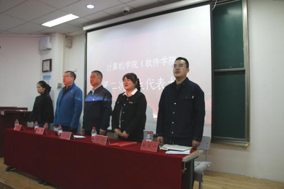 太阳成集团tyc522cc(软件学院)第二次学生代表大会开幕,全体起立,奏唱国歌。