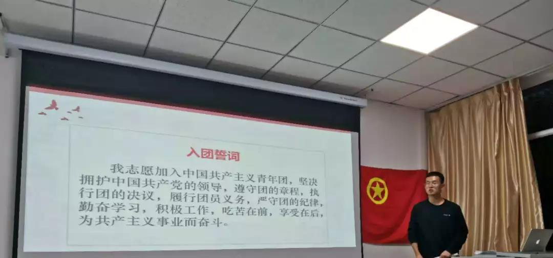 活动伊始,同学们面向团旗,齐唱团歌,庄严宣誓。庄重熟悉的入团誓词提醒着在场的每一位青年团员要时刻不忘初心,牢记团员使命。
