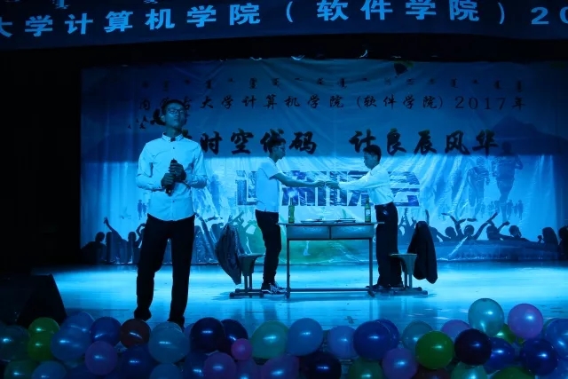 2017年9月29日晚7点,太阳成集团tyc522cc(软件学院)于北校区东区活动中心成功举办“译时空代码 计良辰风华” 2017年迎新晚会。学院副院长赵俊峰、团总支书记兼学工办主任刘雪峰、2017级信管电商班班主任高维出席了晚会,与2017级各班学生共同观赏了这场视觉盛宴。