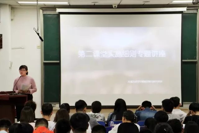 会上,刘老师首先强调了第二课堂学分的重要性,她呼吁大家积极参加各项文体活动及创新比赛,踊跃参与社会志愿项目及实践活动,积累第二课堂分数的同时也能开阔视野,提升自我。随后,刘老师着重讲解了第二课堂的实施细则和计分细则,对第二课堂的具体类别进行了介绍,并对各类活动的分值分配情况作出详细说明。同时,刘老师还就第二课堂管理系统、各类证明材料的上传,以及审核阶段的奖惩制度进行了简要讲解,以帮助学生尽快掌握第二课堂的有关内容。最后,学院相关学生干部对现场学生代表提出的疑问进行了解答,并要求各班负责人向班级传达本次讲座内容。