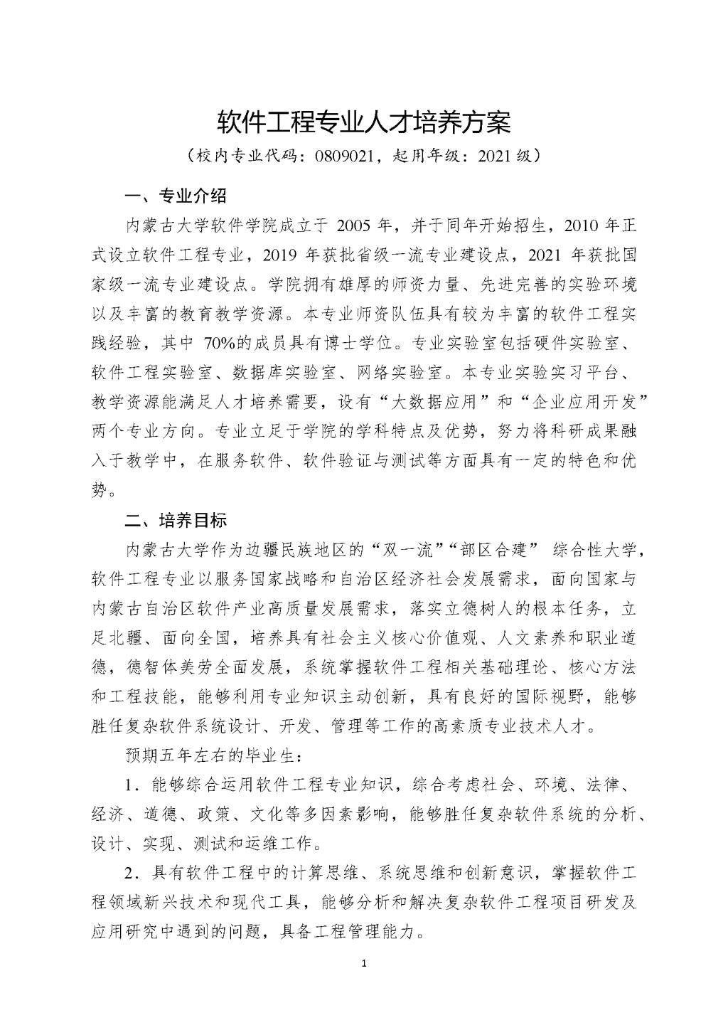 软件工程专业人才培养方案(2021版-微调)