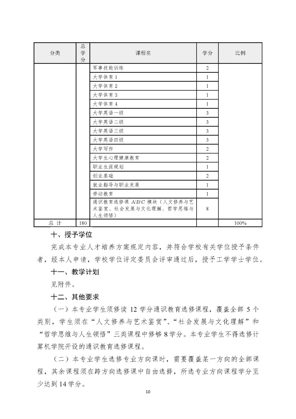 计算机科学与技术专业本科培养方案(2021版-微调)