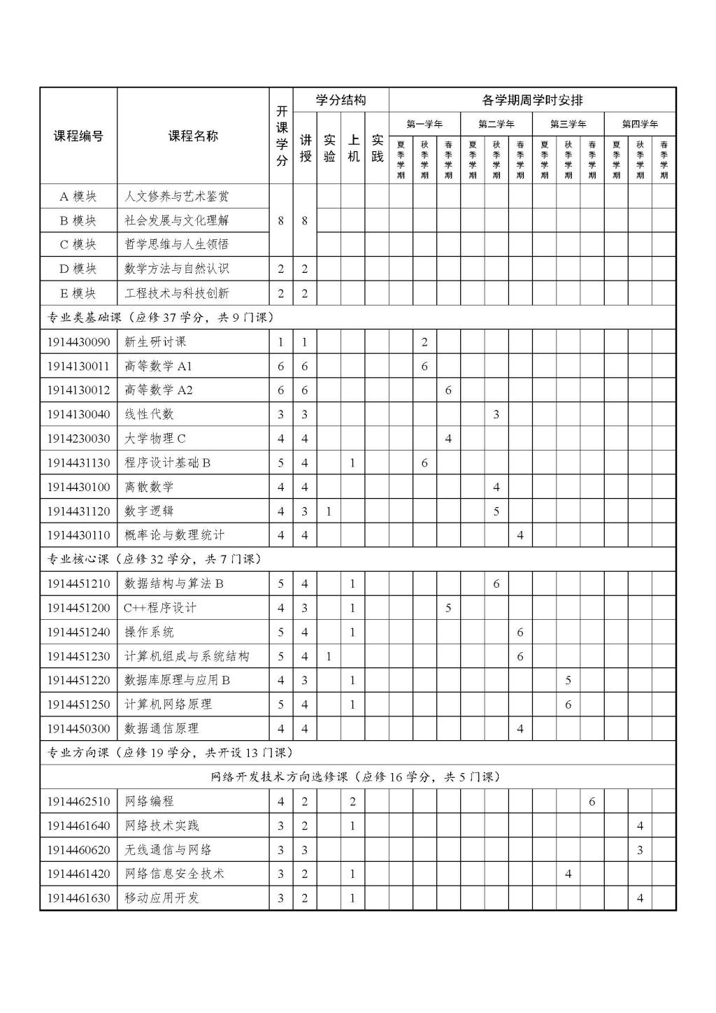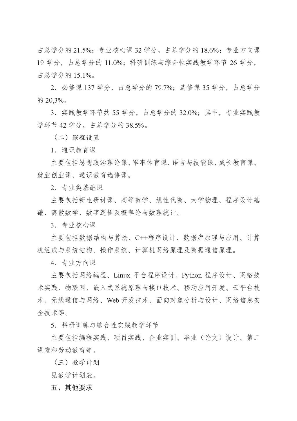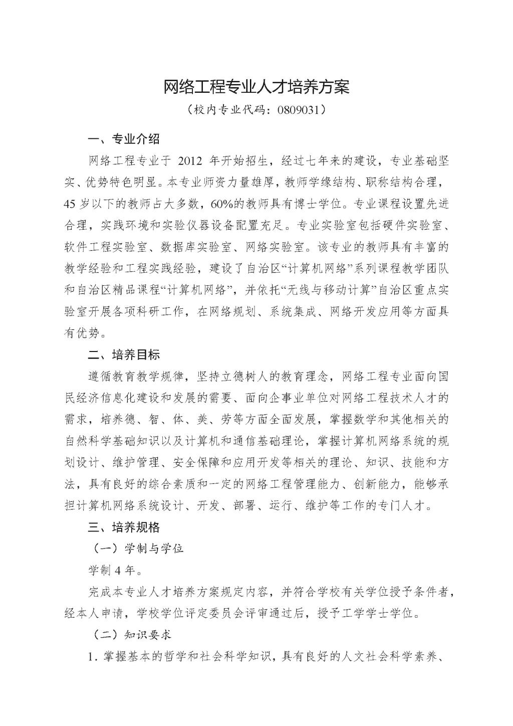 网络工程专业本科培养方案(2019版)