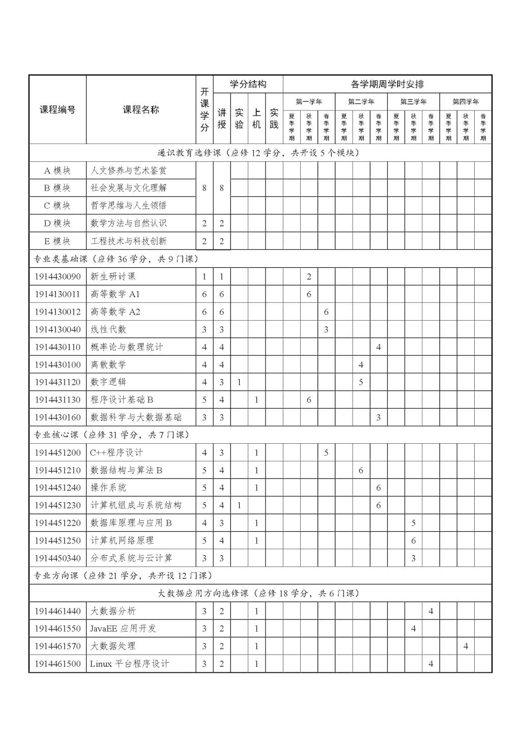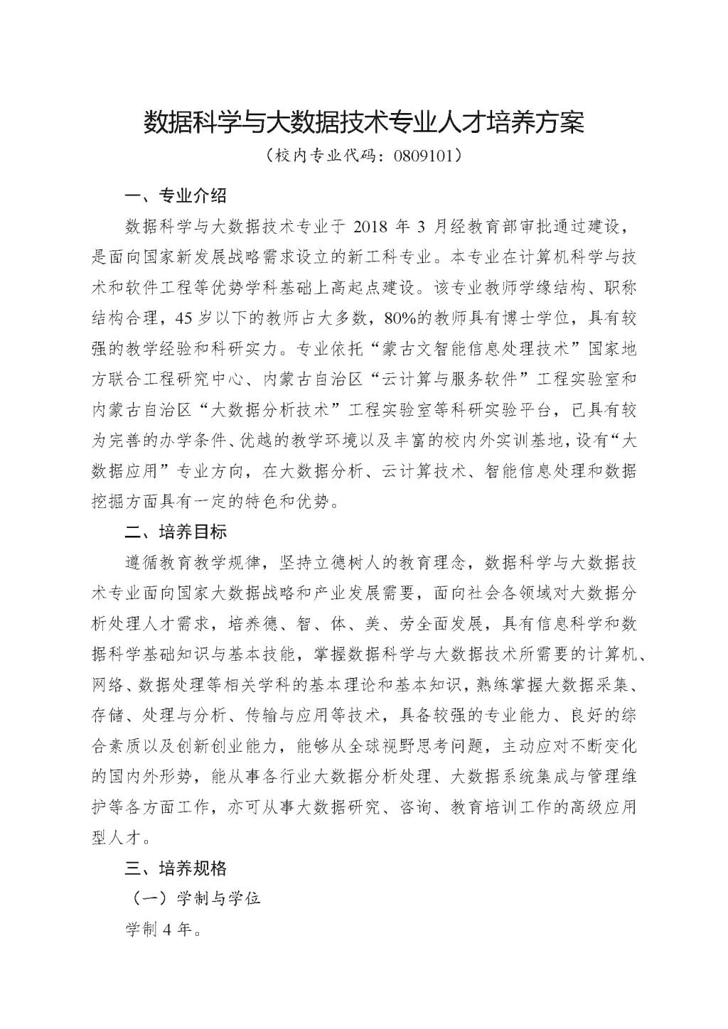 数据科学与大数据技术专业人才培养方案(2019版)