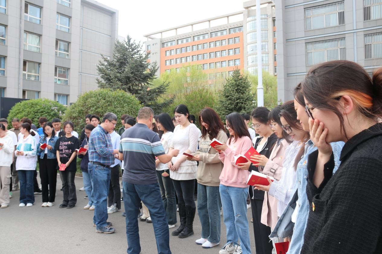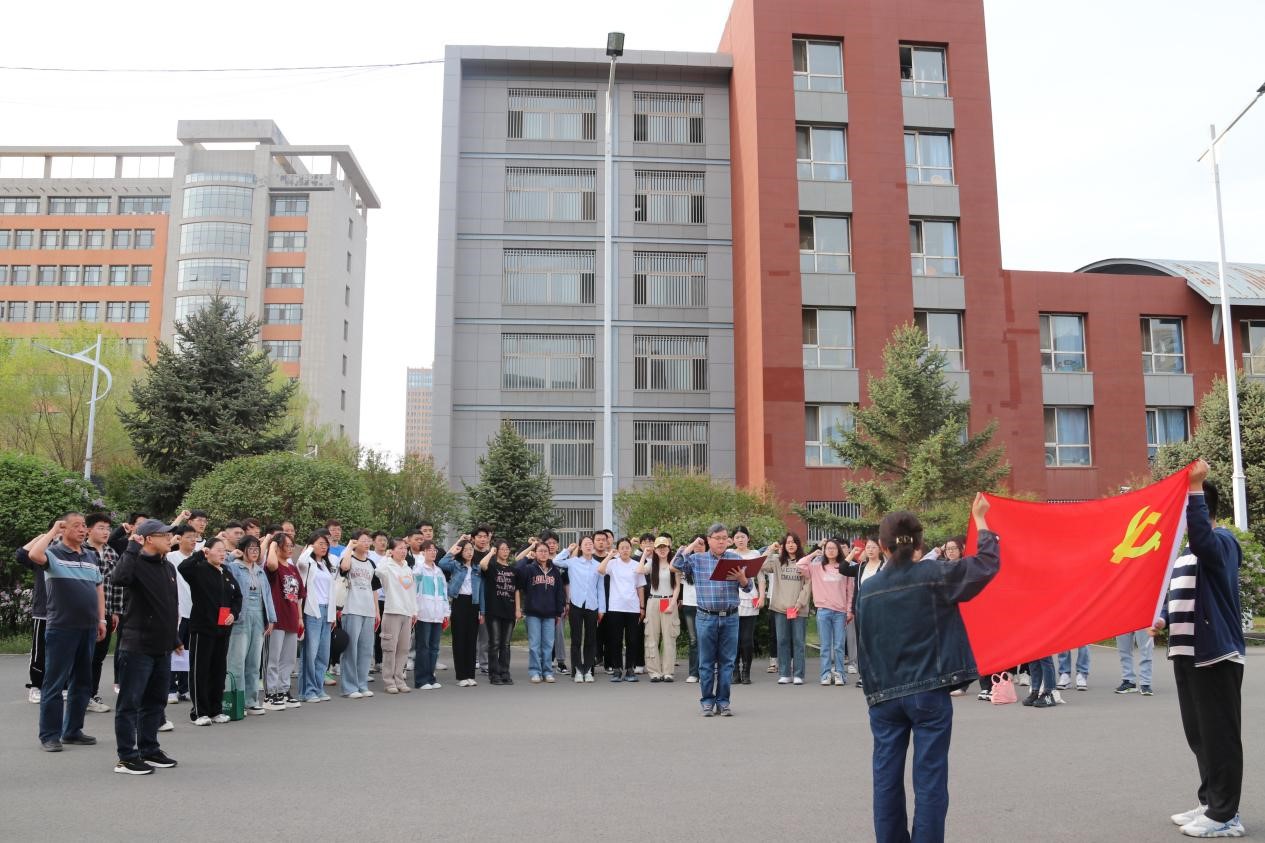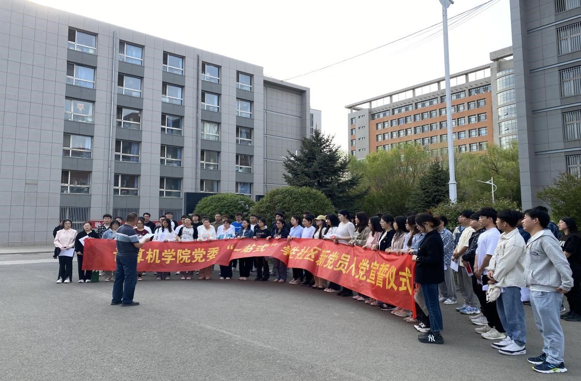 为加强预备党员的党性教育,教育党员铭记入党誓言,牢记党的宗旨,增强党员意识,发挥党员的先锋模范作用。学院党委于4月18日下午在赛罕校区东院学生公寓2号楼前举行新党员入党宣誓仪式。学院党委书记黄翔、学院副院长孙涛、学院党委组织员张献国、退休教师党员王玉清及65名新入党的预备党员参加,入党宣誓仪式由学院副院长赵俊峰主持。