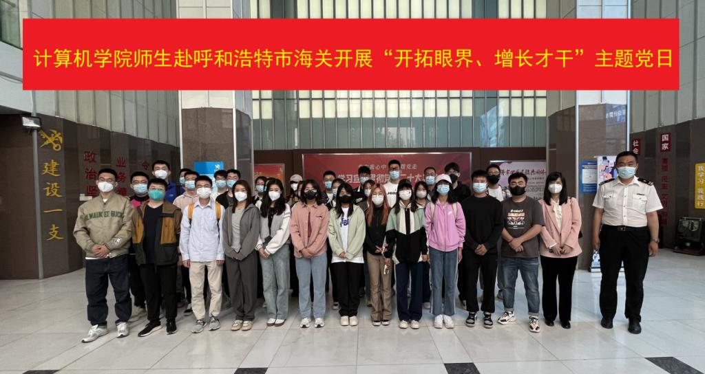 为激发学生学习热情、增强科技自信和科技报国信心,推动学习贯彻习近平新时代中国特色社会主义思想主题教育走深走实,2023年5月24日下午,我院计算机科学系本科生党支部、计算机应用研究生党支部、计算机网络研究生党支部30余人,在计算机科学系本科生党支部书记卢慧老师带领下,赴呼和浩特市海关和蒙古文智能信息处理技术国家地方联合工程研究中心参观学习,开展“开拓眼界、增长才干”主题党日活动。
