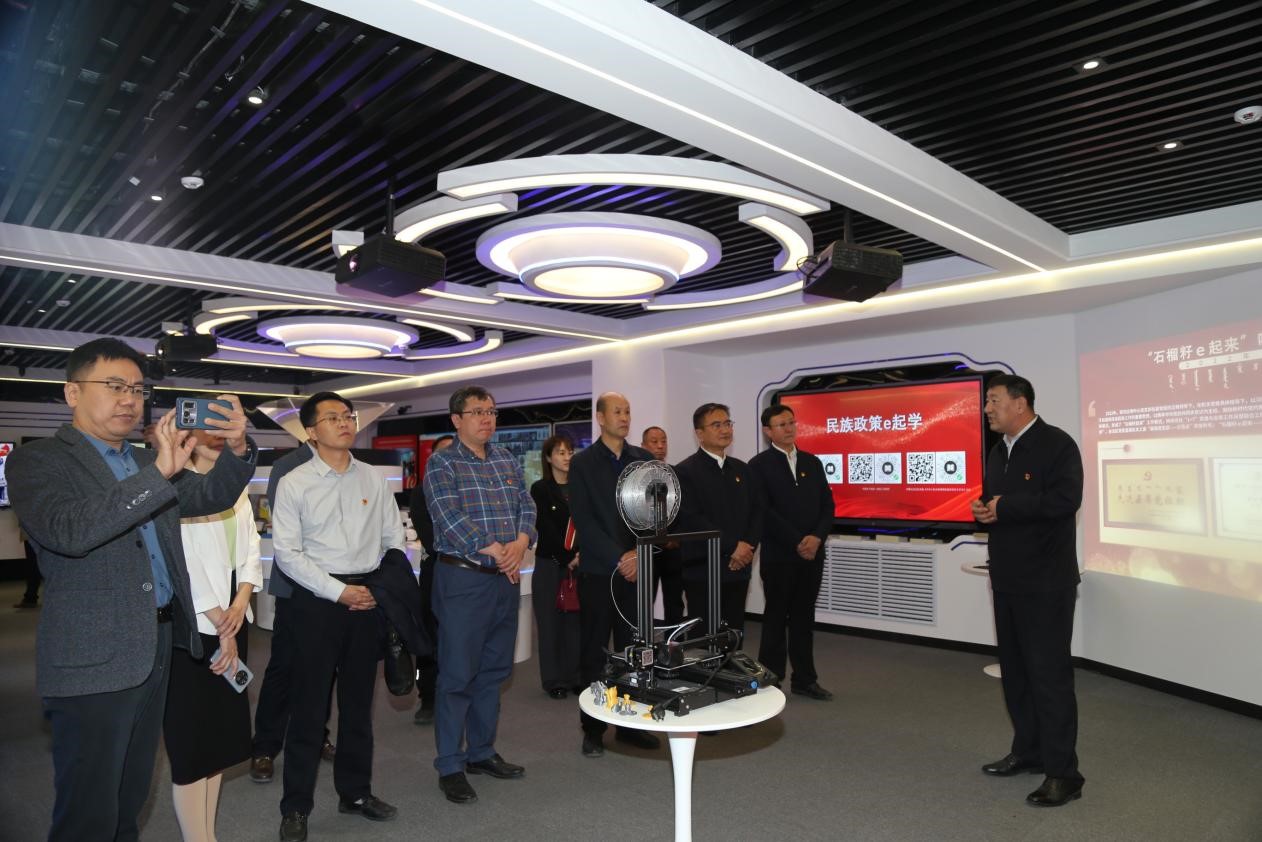 参观了自治区民委地方语言文字研究应用中心党建阵地和“石榴籽起来”民族工作数字展厅。