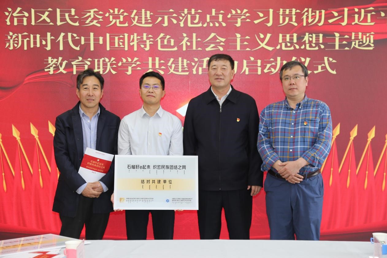 为深入学习贯彻党的二十大精神,扎实开展习近平新时代中国特色社会主义思想主题教育,铸牢中华民族共同体意识,充分发挥自治区民委基层党组织“最强党支部示范点”“全区民族团结进步模范集体”示范引领模范带动作用,拓展“‘石榴籽e起来’唱响民族团结进步主旋律”党建特色创新品牌案例的共建辐射面,促进联建共建双方基层党组织的融合互动,实现党建与业务“双推进、双融合”,提升基层党组织的党建工作水平。我院与自治区民委以“资源共享、优势互补、互助合作、联合提升”主题,开展党建联建共建活动。