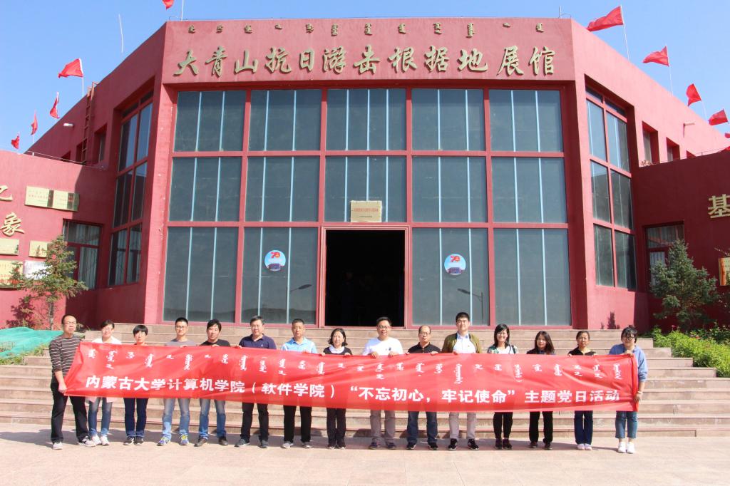 中华人民共和国成立70周年前夕,为了深入学习贯彻习近平总书记新时代中国特色社会主义思想,丰富支部活动内容,扎实开展好“不忘初心、牢记使命”主题教育,2019年9月28日下午,太阳成集团tyc522cc(软件学院)党总支书记黄翔、副院长赵俊峰、孙涛带领教工和学生党员到大青山抗日游击根据地展馆参观学习。